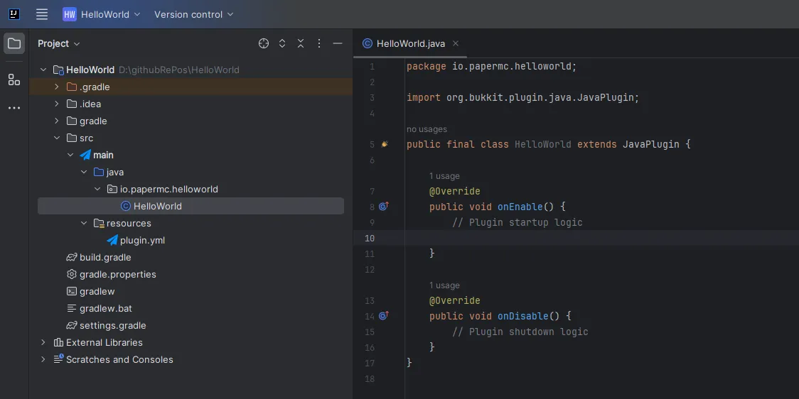 You should now have a project set up with Paper as a dependency. All you have left to do now is to compile your plugin and run it on a Paper server.